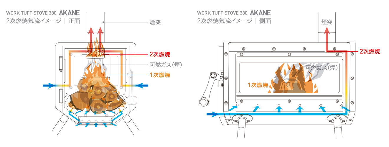初期モデルも「2次燃焼でクリーン排気&パワフル燃焼ストーブ」と謳われています。しかしながら、二次燃焼状態を上手く保つことができませんでした。