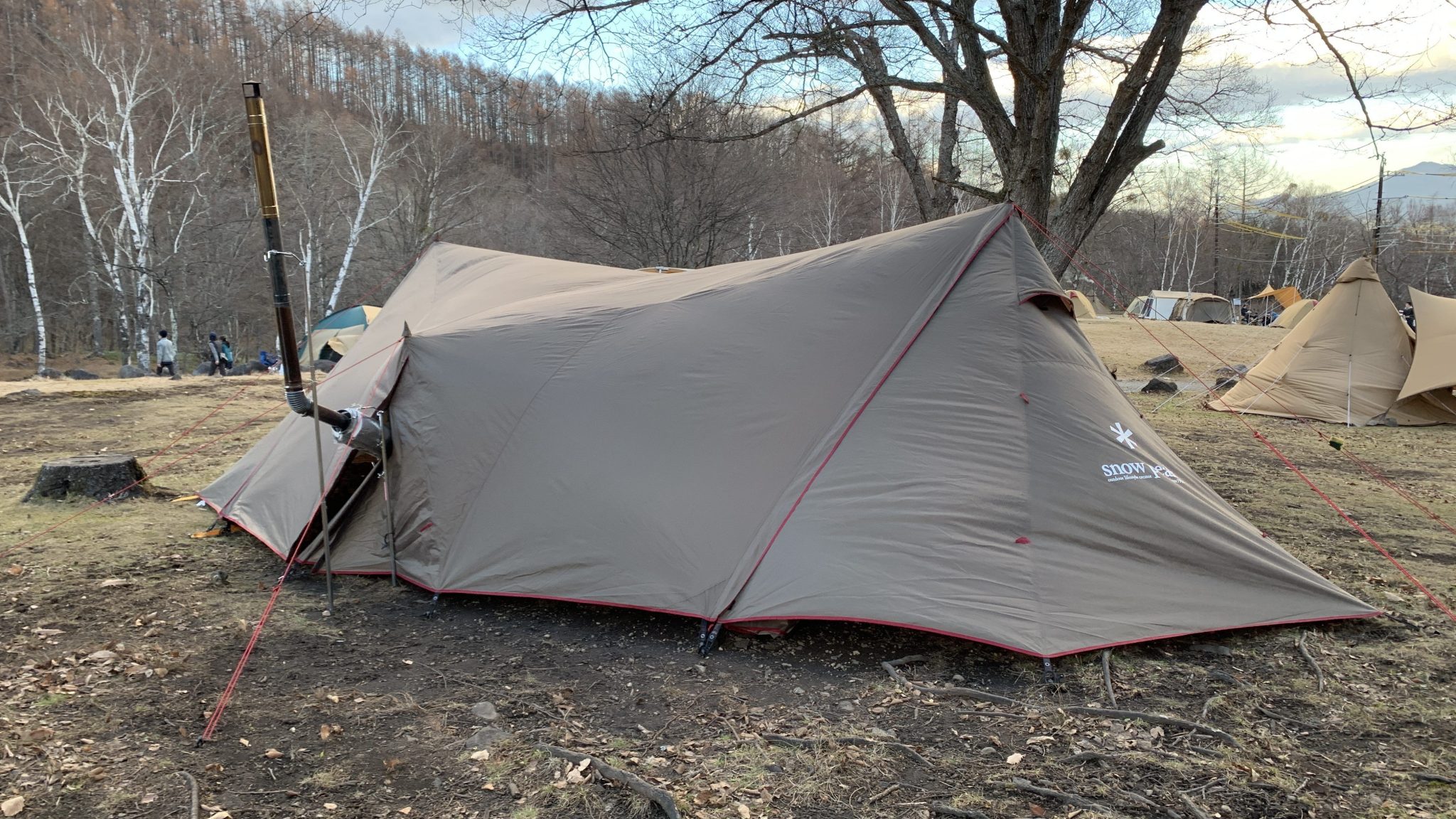 今回は然程寒くも無かったので、テントとタープにして、外にストーブを設置して試してみました。