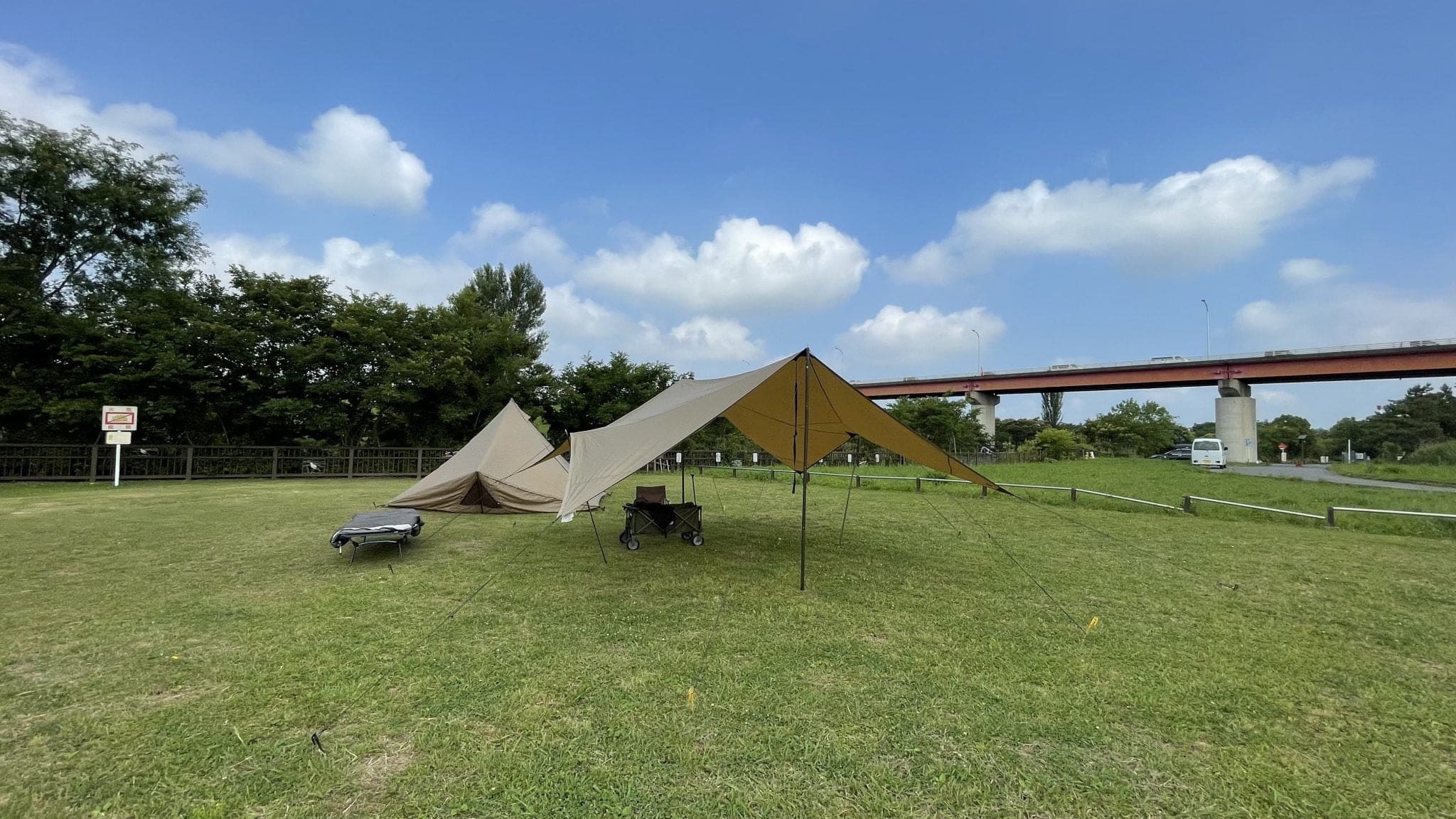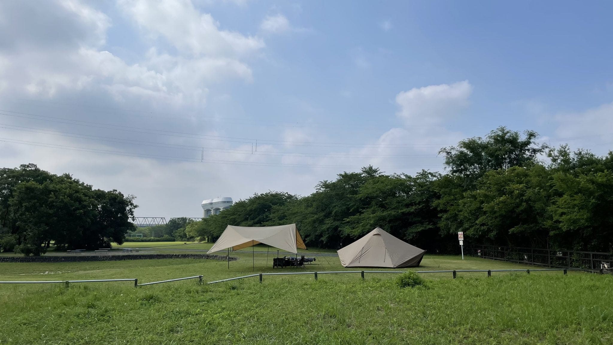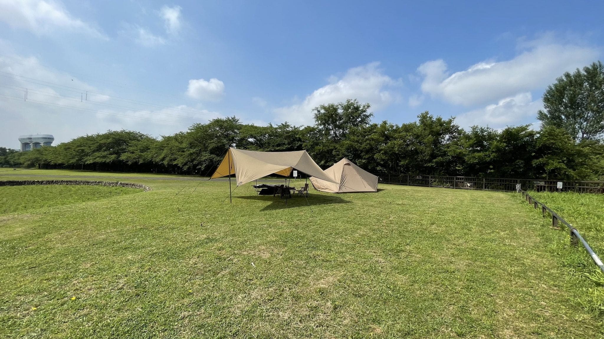 先週末の雨キャンプで濡れたまま撤収したGIGI-1とGEU。乾燥させるために、梅雨の晴れ間に桜草公園に行ってきました。