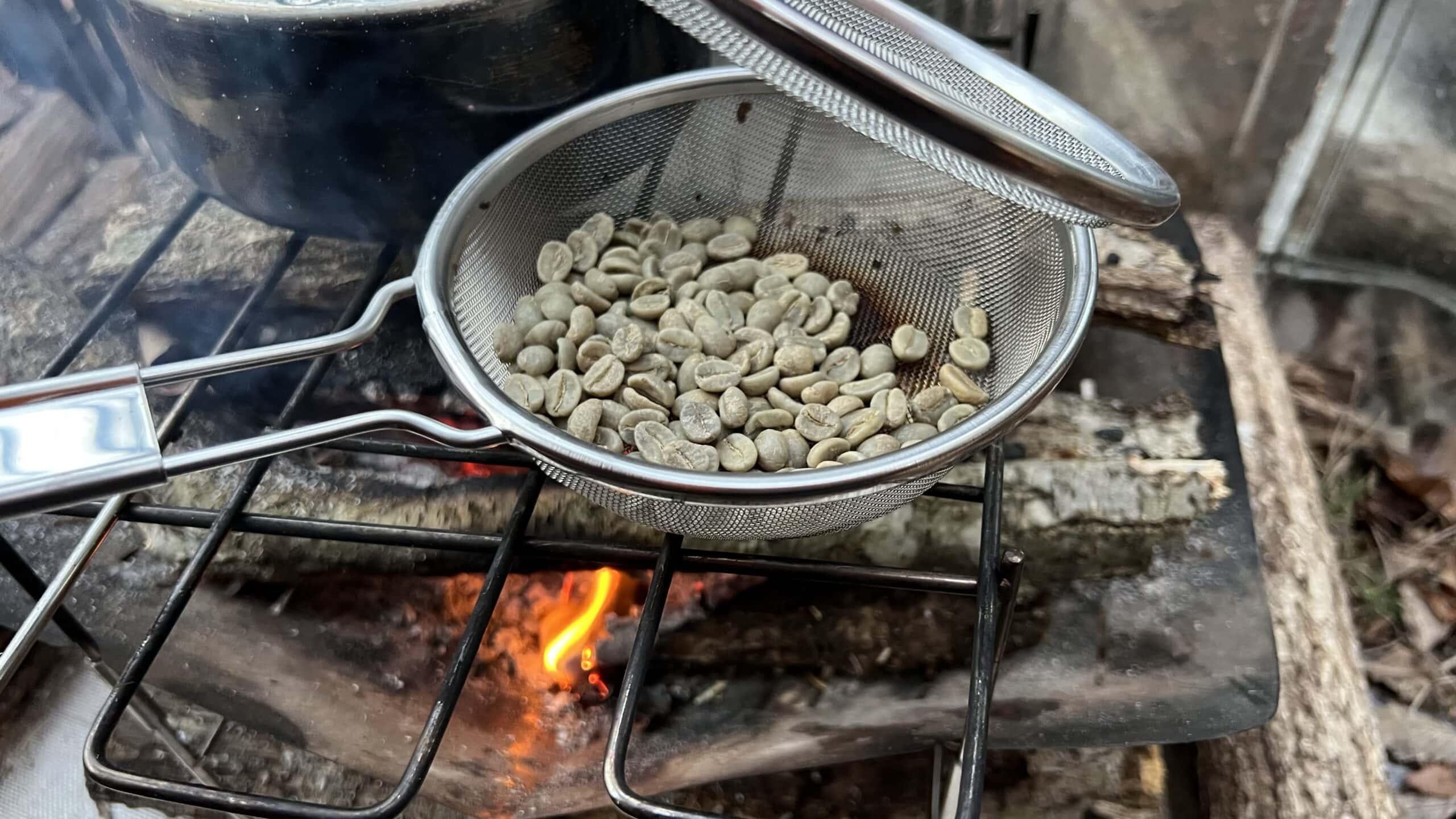 キャンプで炒り網で焙煎してみたら