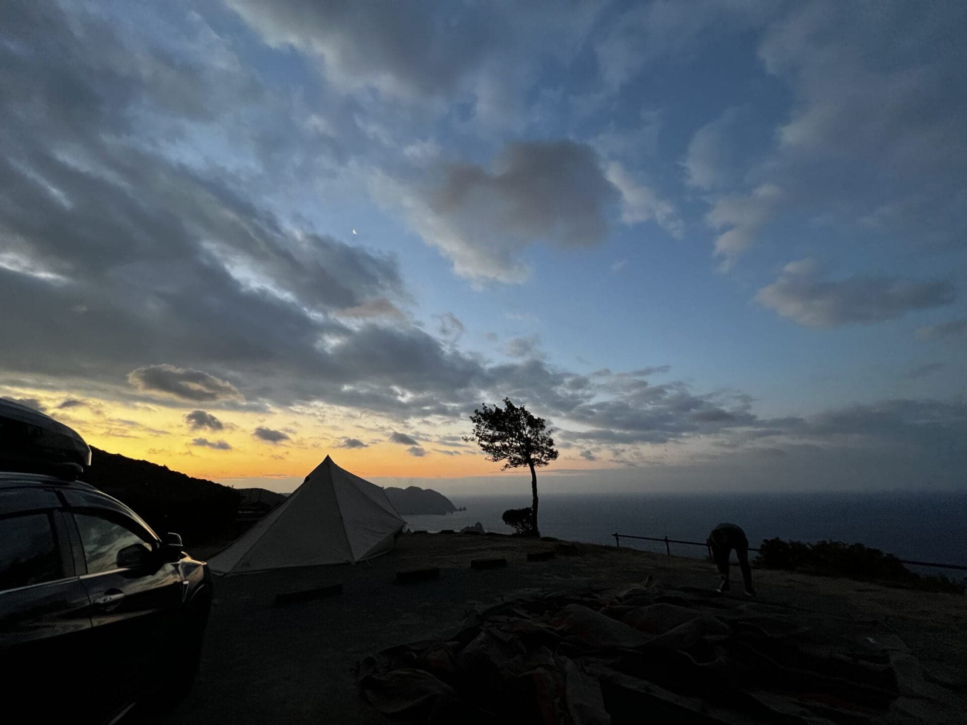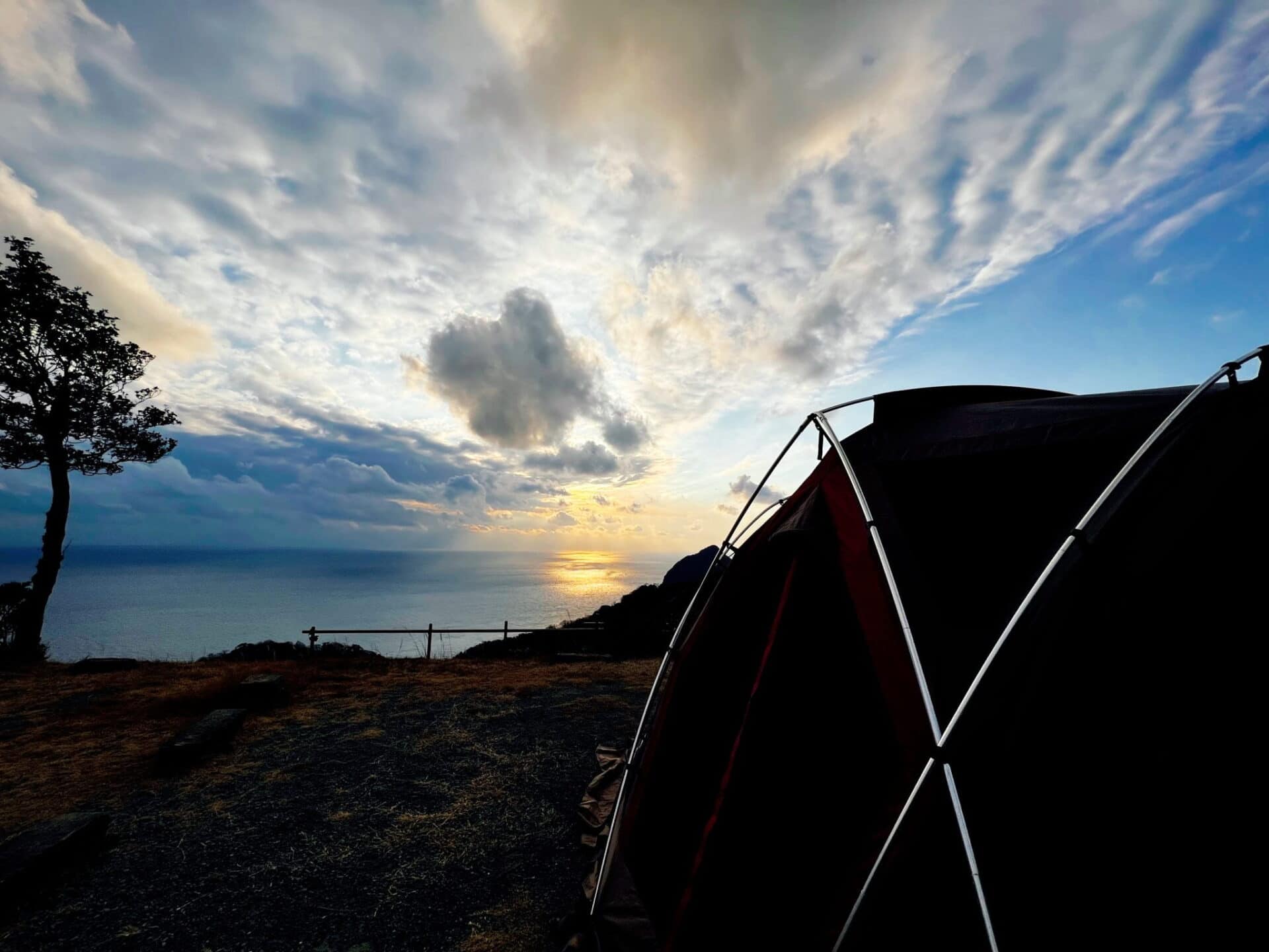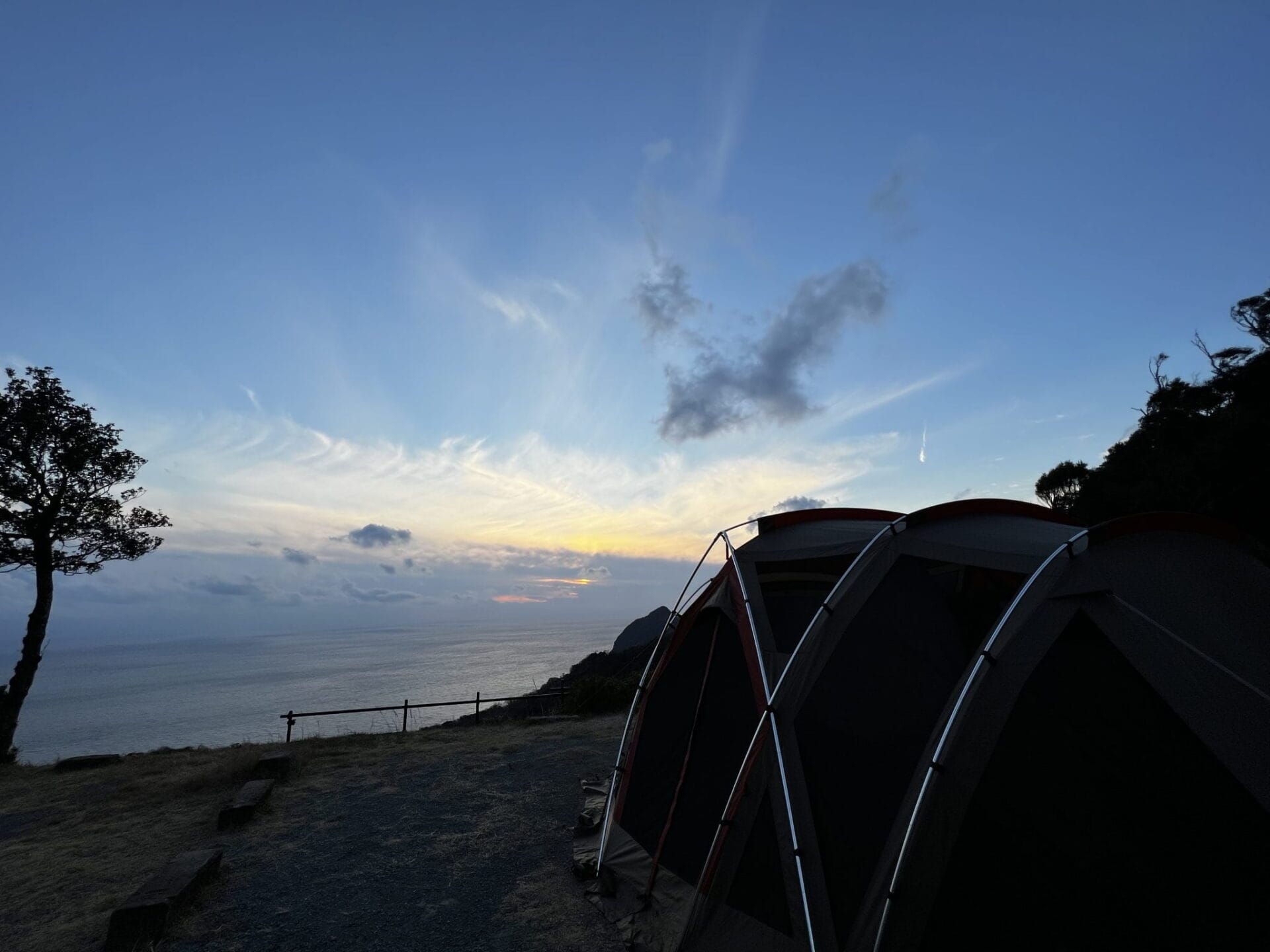 眼前には大海原が広がり眺望は良かったんですが、風の影響をもろに受けるのがC1,3,4サイトでした。 一段下のB系サイトは余り風の影響を受けていない様子でした。