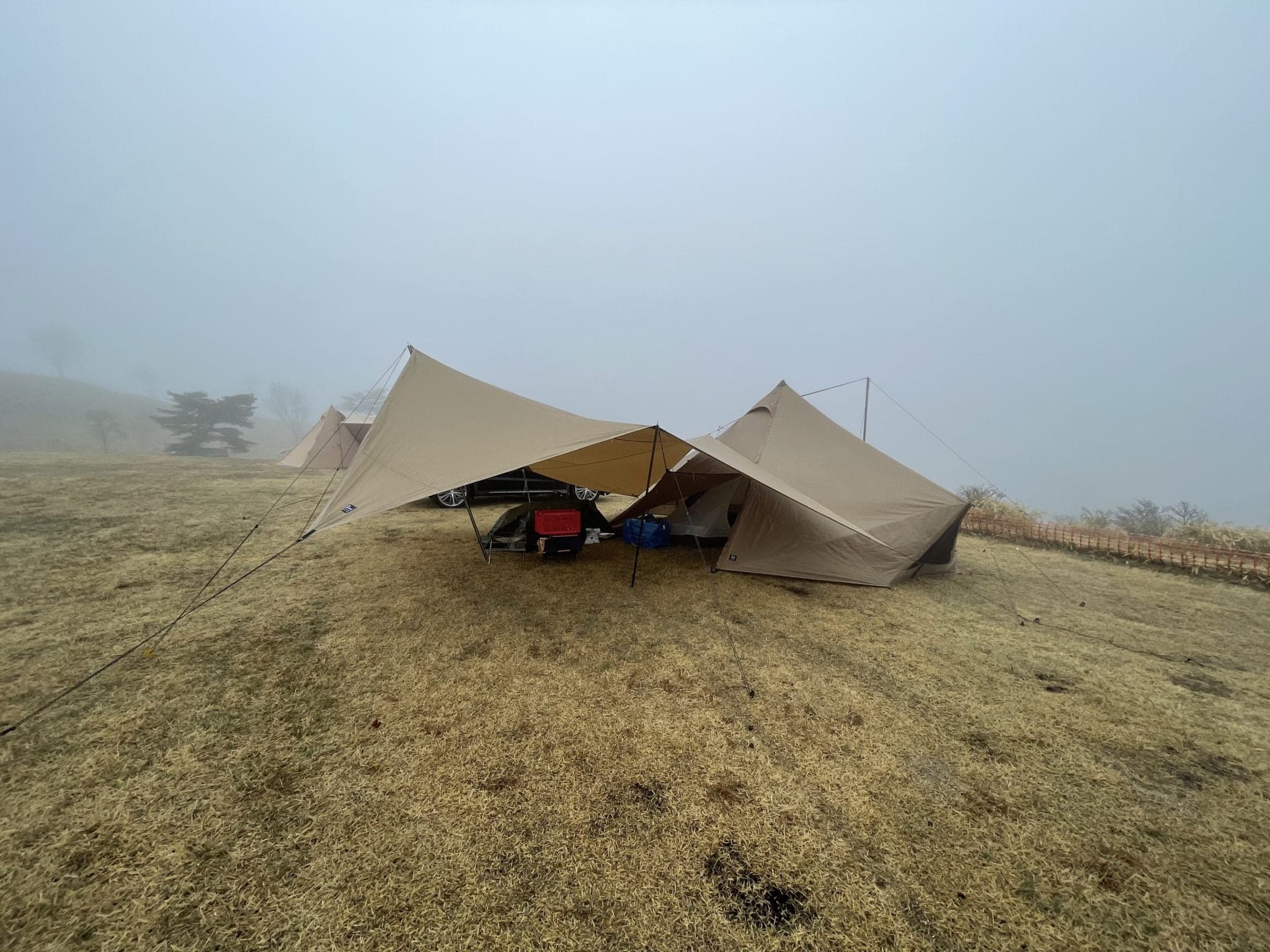 2021シーズンのオープン初日に訪問。雨だと分かっていたけど、夜中の暴風雨(嵐)は結構凄かった。 次男と2人だったので、GIGI-1を設営したのですが、構造的に正面から風を受けると形状が崩れて、飛ばされないかヒヤヒヤでした。