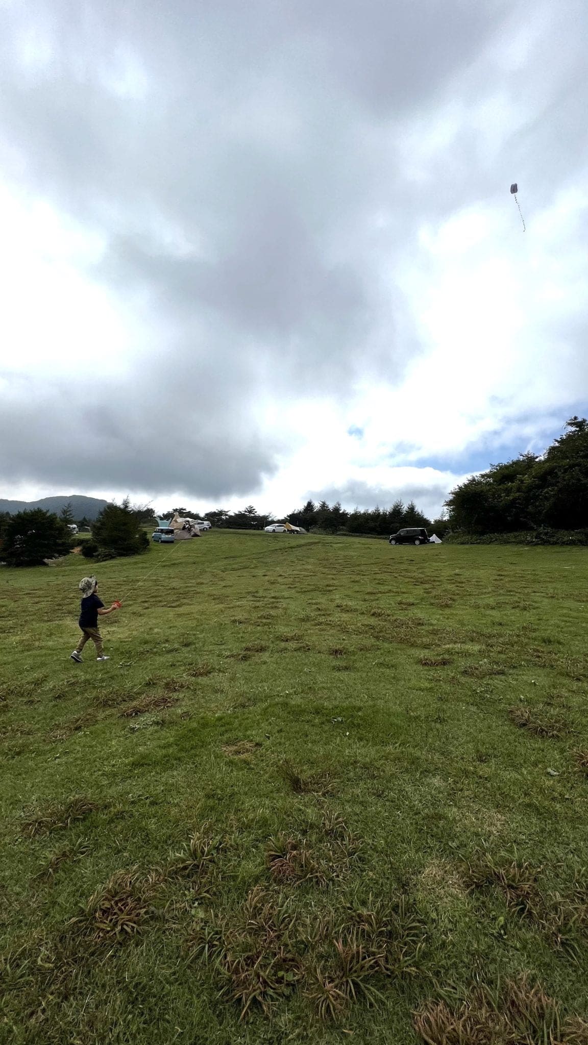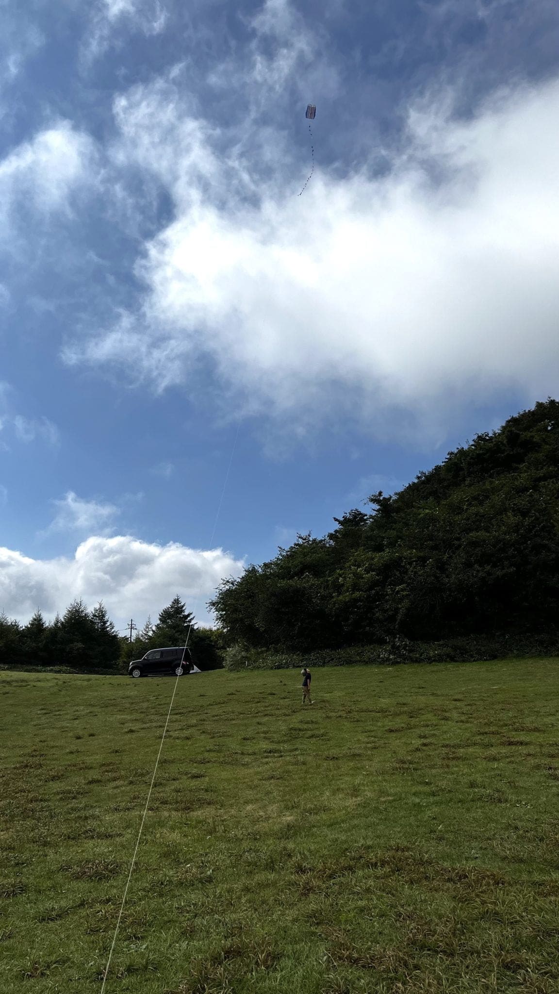 この日は翌日午後から天気が崩れる予報で、風が良い感じで吹いていて次男と凧揚げをして遊びました。
