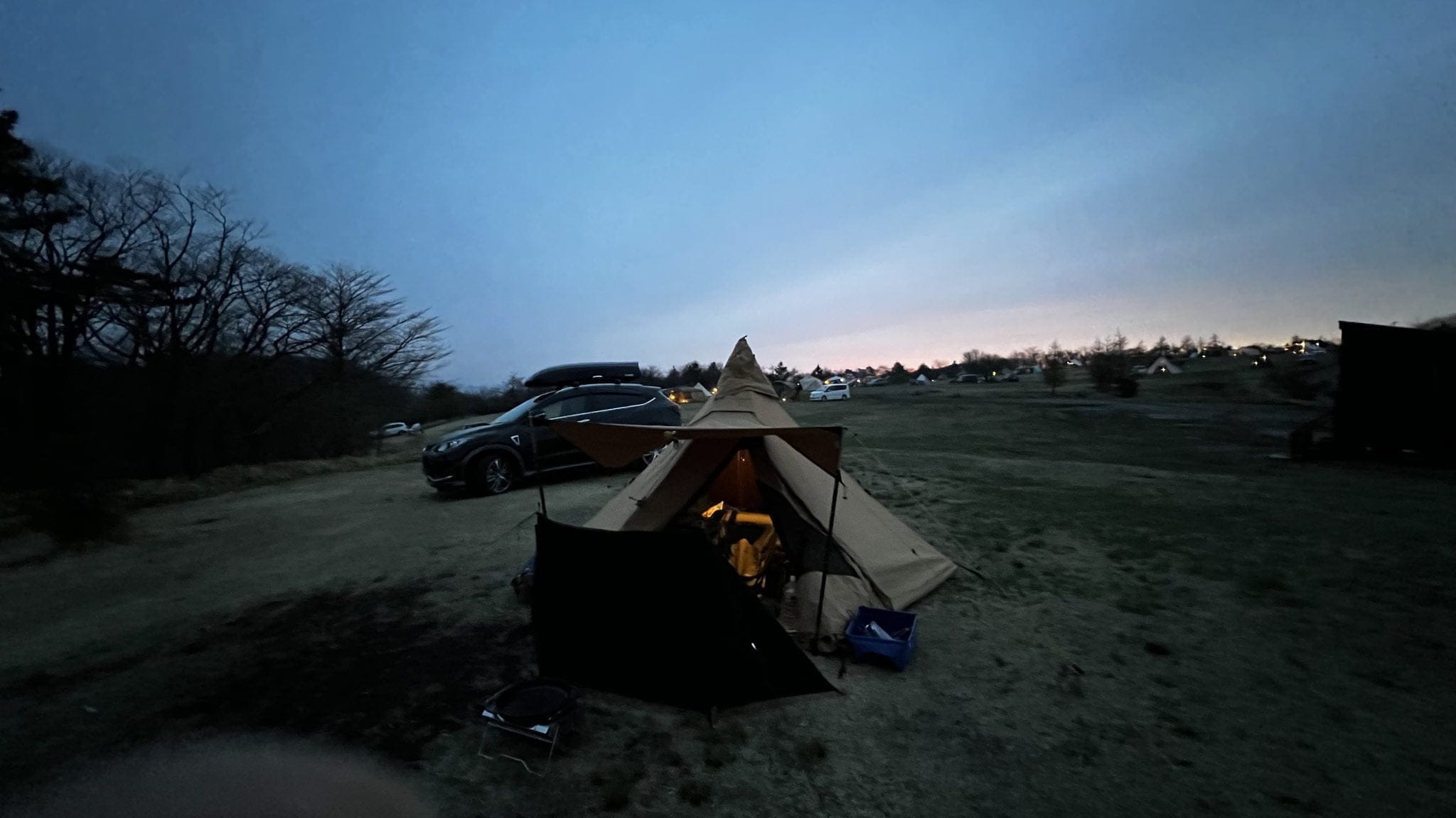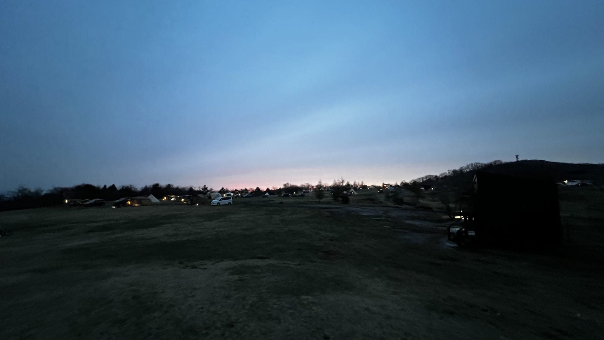 あわよくば星空の写真でもと思っていましたが、生憎の天気でした。昼間は晴れて25℃ぐらいで汗ばむ陽気でしたが、夕方ぐらいから曇り始め…。夜中は薄曇りで星がまばらに見える程度でした。