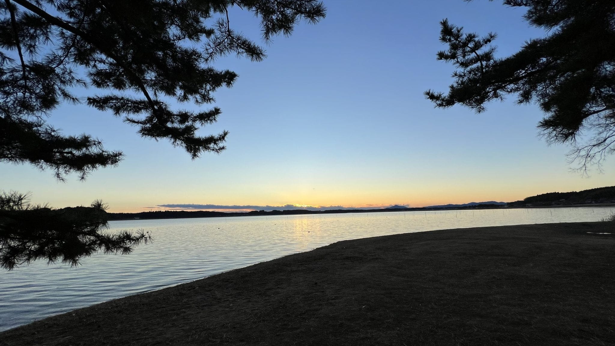 夕陽を期待するなら東側にある広浦公園キャンプ場の方が良いかも知れません。