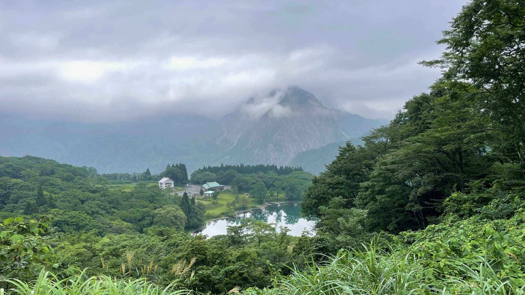 設営時は曇りでしたが、翌朝まで雨が降ったり止んだりで少し明るくなっても、残念ながらお目当ての明星山の大岩壁をはっきり拝むことは叶いませんでした。