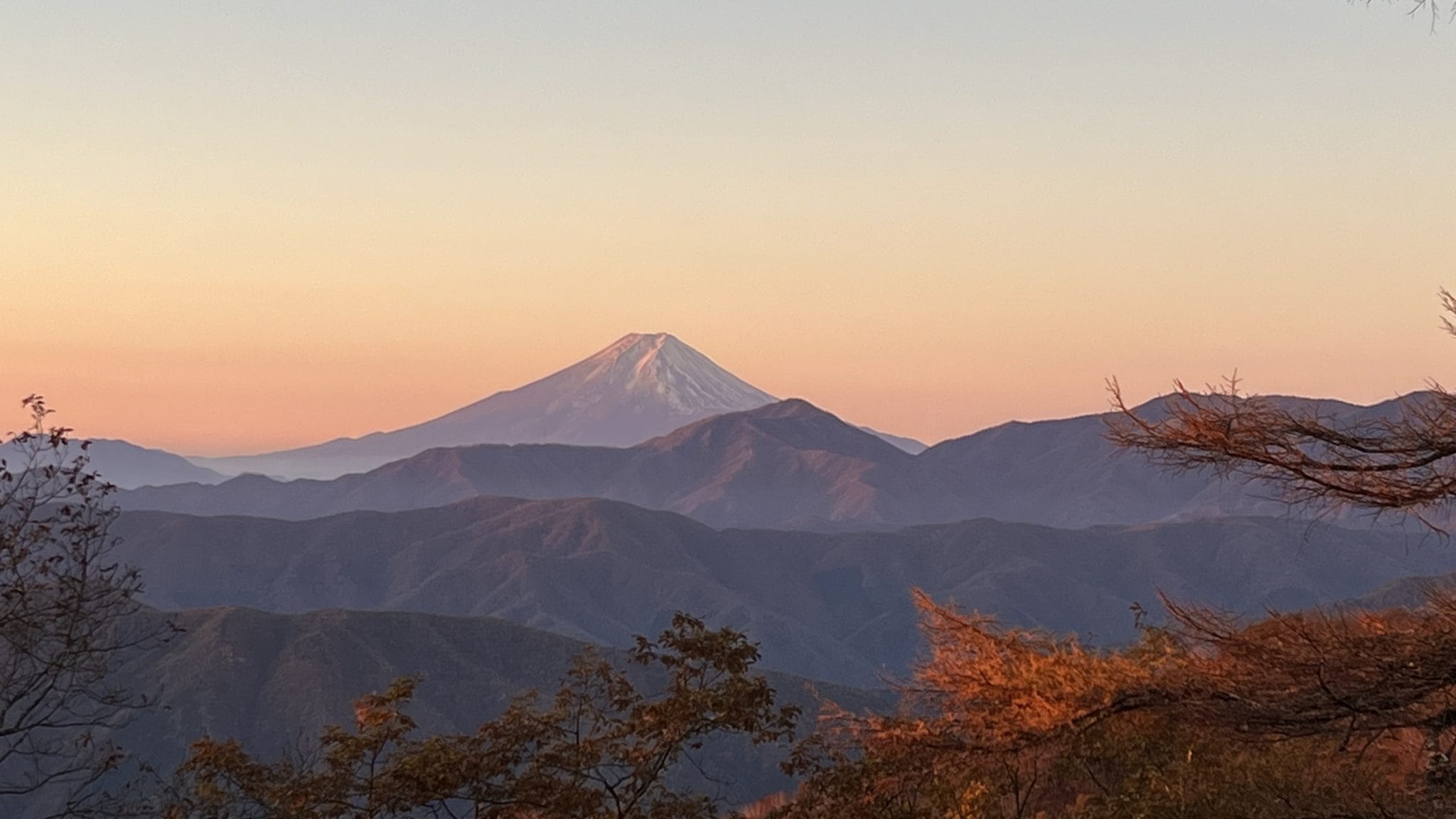 2日目は5:00頃目覚めて、日の出と朝日に染まる富士山を撮影。ゆっくり朝食を取り、片付けをして7:20過ぎに小屋を出発しました。雲取山までは登るつもりで、足の状態を見て引き返そうとも考えていました。