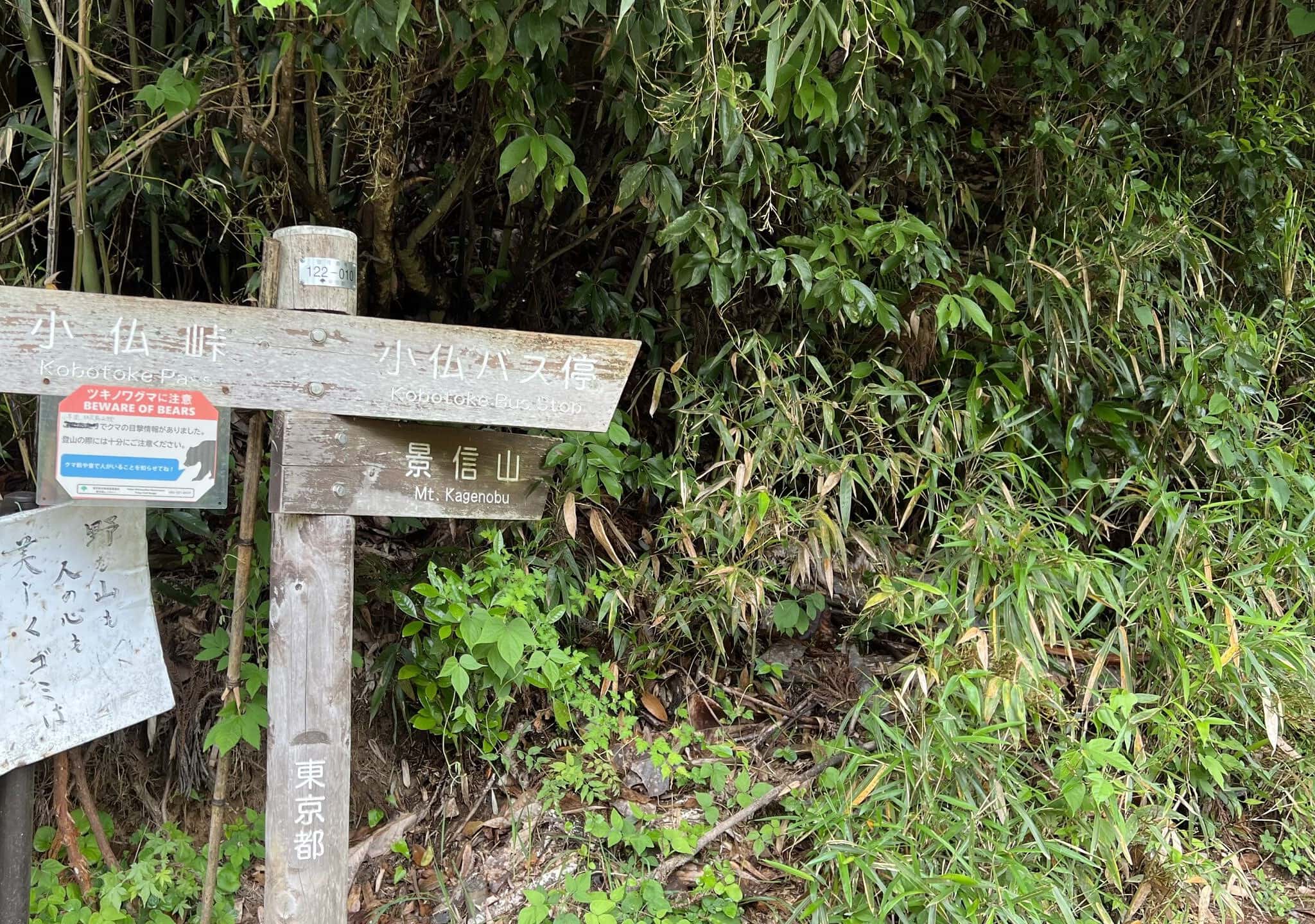 登山口から陣馬山まではひたすら尾根道を上ります。陣馬山から景信山までは比較的なだらかで雨でグチャグチャでしたが歩きやすかったです。景信山から小仏バス停方面への下りは結構急で雨でぬかるんでいて、1回思いっきり転びました。